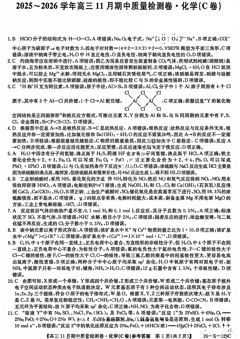 山西省卓越联盟2025-2026学年高三11月期中质量检测卷 化学答案.pdf