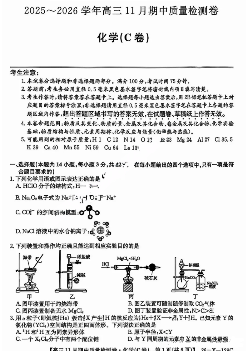 山西省卓越联盟2025-2026学年高三11月期中质量检测卷 化学.pdf