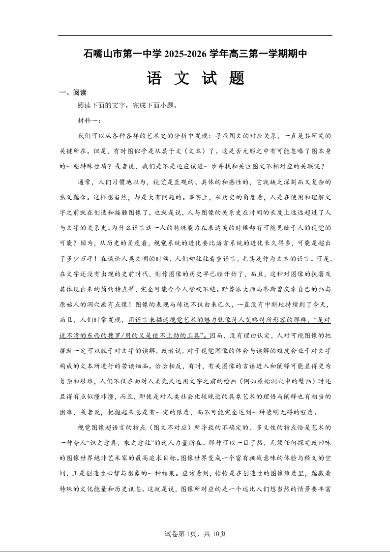 宁夏石嘴山市第一中学2026届高三上学期11月期中考试 语文.docx