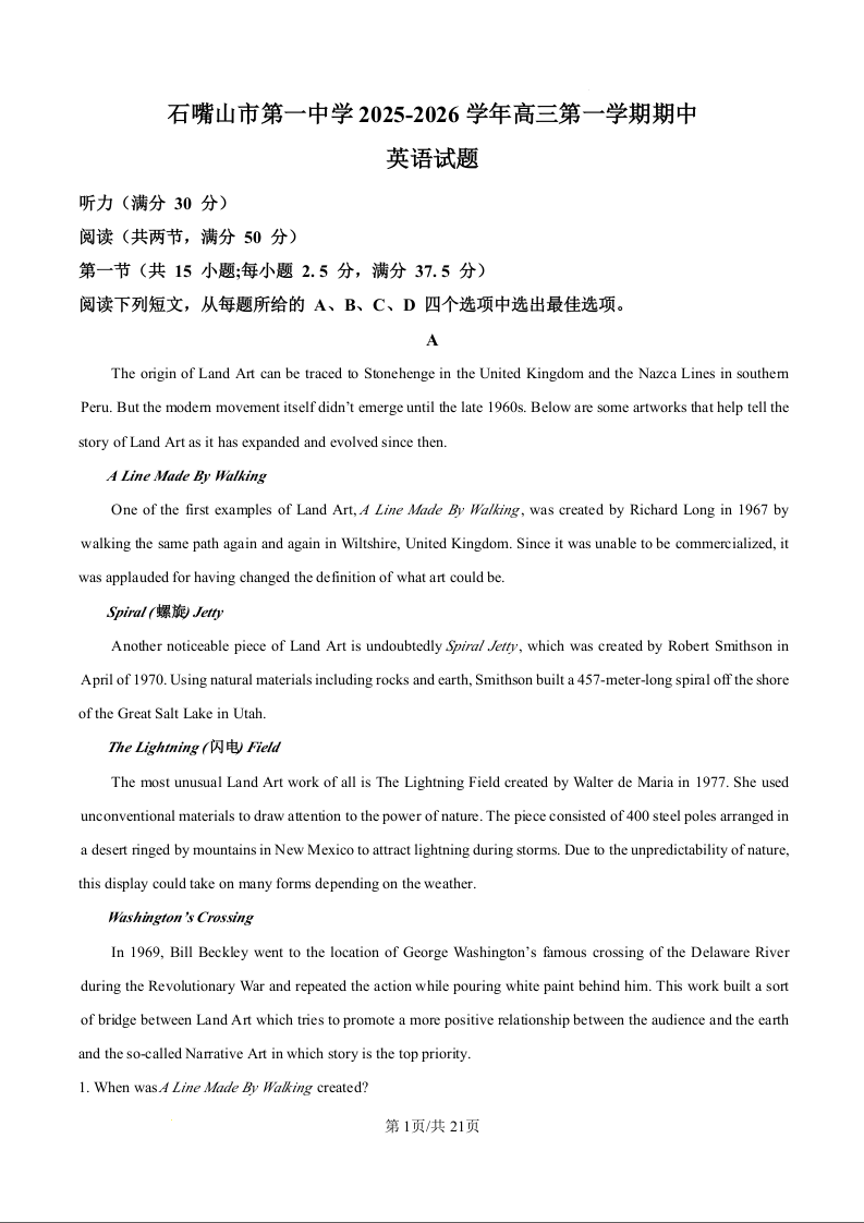 宁夏石嘴山市第一中学2026届高三上学期11月期中考试 英语答案.docx