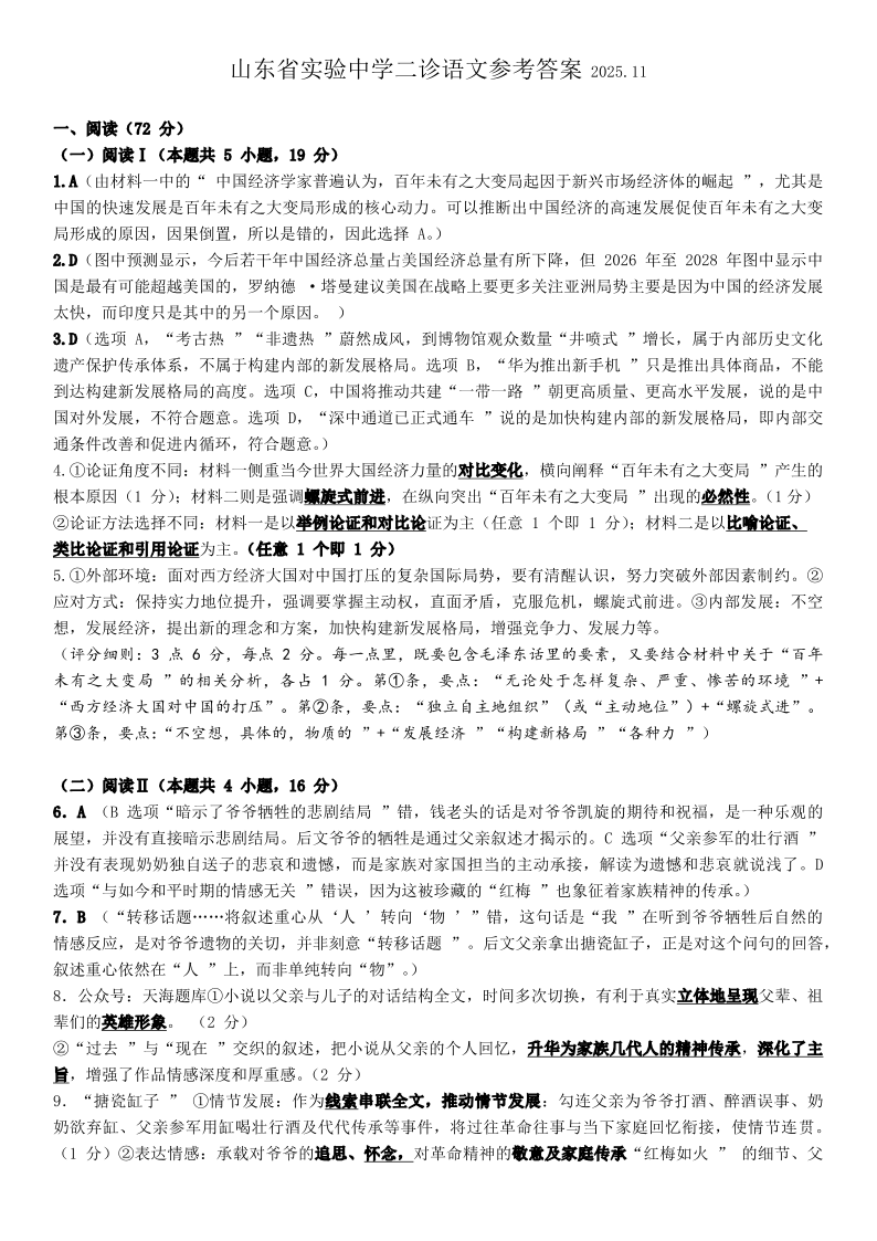 山东省实验中学2026届高三第二次诊断性考试 语文答案.pdf