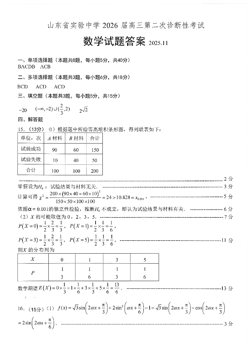山东省实验中学2026届高三第二次诊断性考试 数学答案.pdf