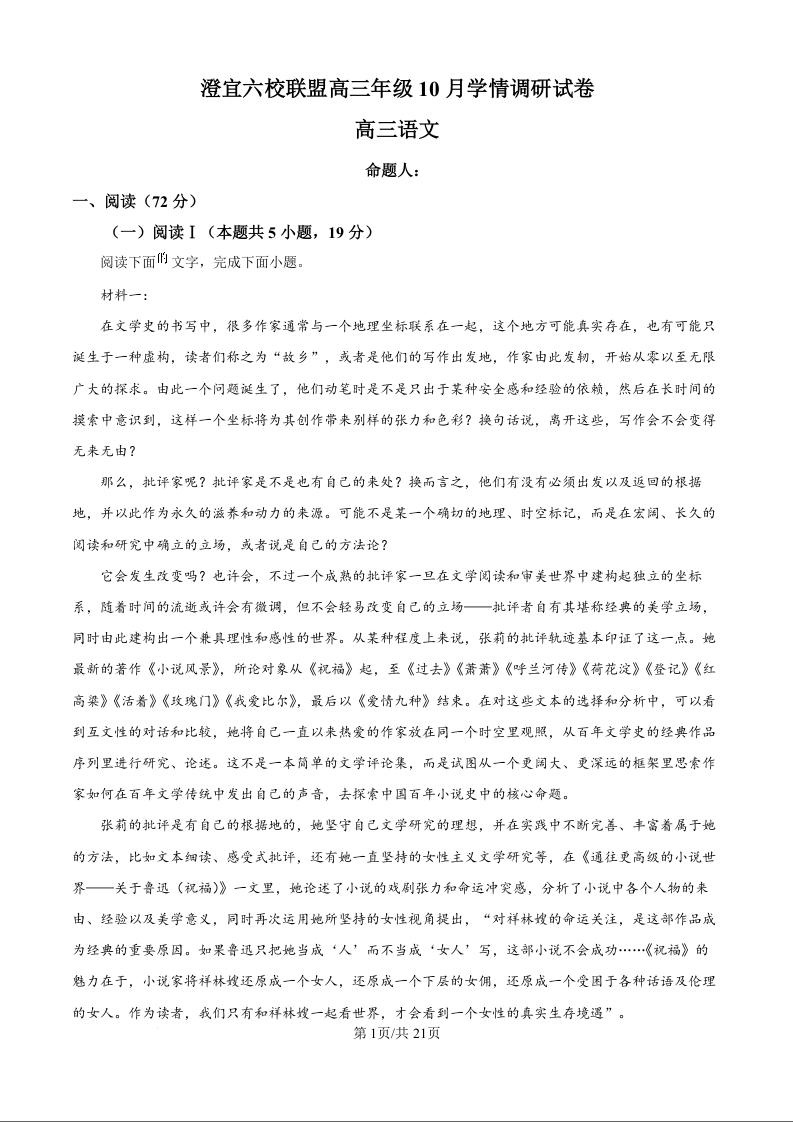 江苏省澄宜六校联盟2025-2026学年高三上学期10月学情调研 语文答案.docx