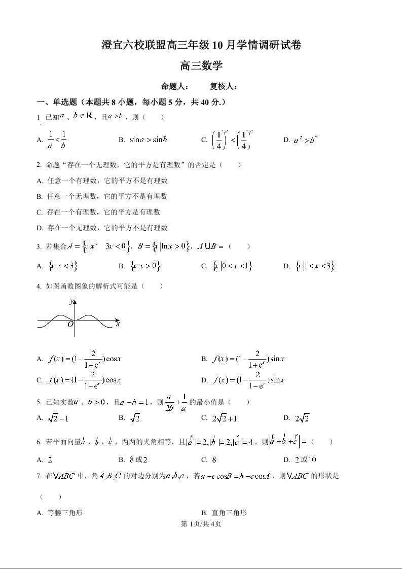 江苏省澄宜六校联盟2025-2026学年高三上学期10月学情调研 数学.docx