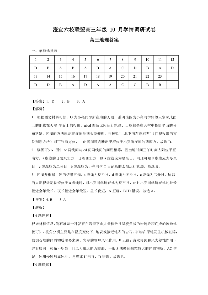 江苏省澄宜六校联盟2025-2026学年高三上学期10月学情调研 地理答案.docx