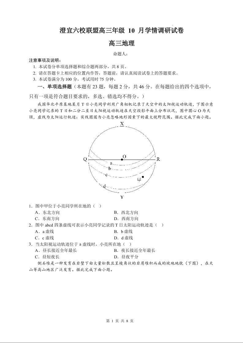 江苏省澄宜六校联盟2025-2026学年高三上学期10月学情调研 地理.docx