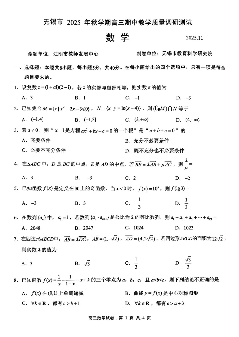 无锡市2025年秋学期高三期中教学质量调研测试 数学.pdf