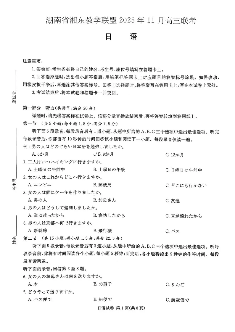 湖南省湘东教学联盟2025年11月高三联考 日语.pdf