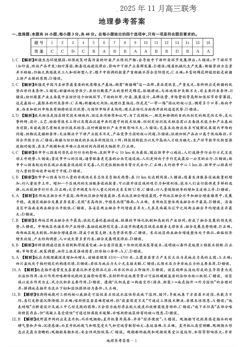 湖南省湘东教学联盟2025年11月高三联考 地理答案.pdf