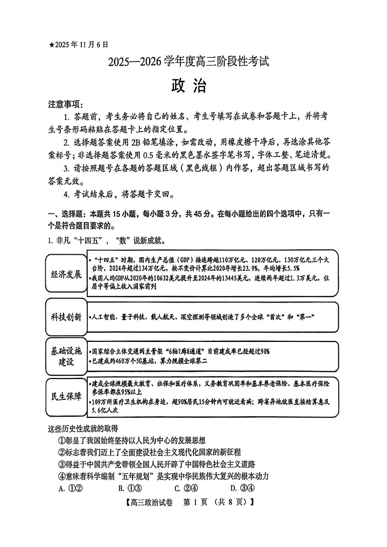 三门峡市2025—2026学年度高三阶段性考试 政治.pdf