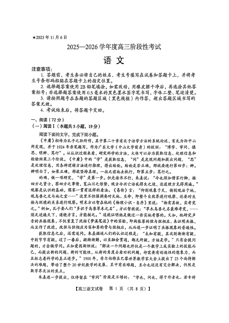三门峡市2025—2026学年度高三阶段性考试 语文.pdf