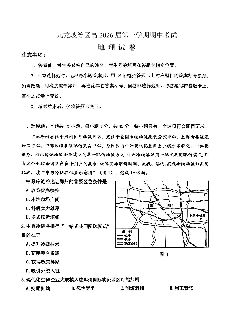 九龙坡等区高2026届高三第一学期期中考试 地理.pdf
