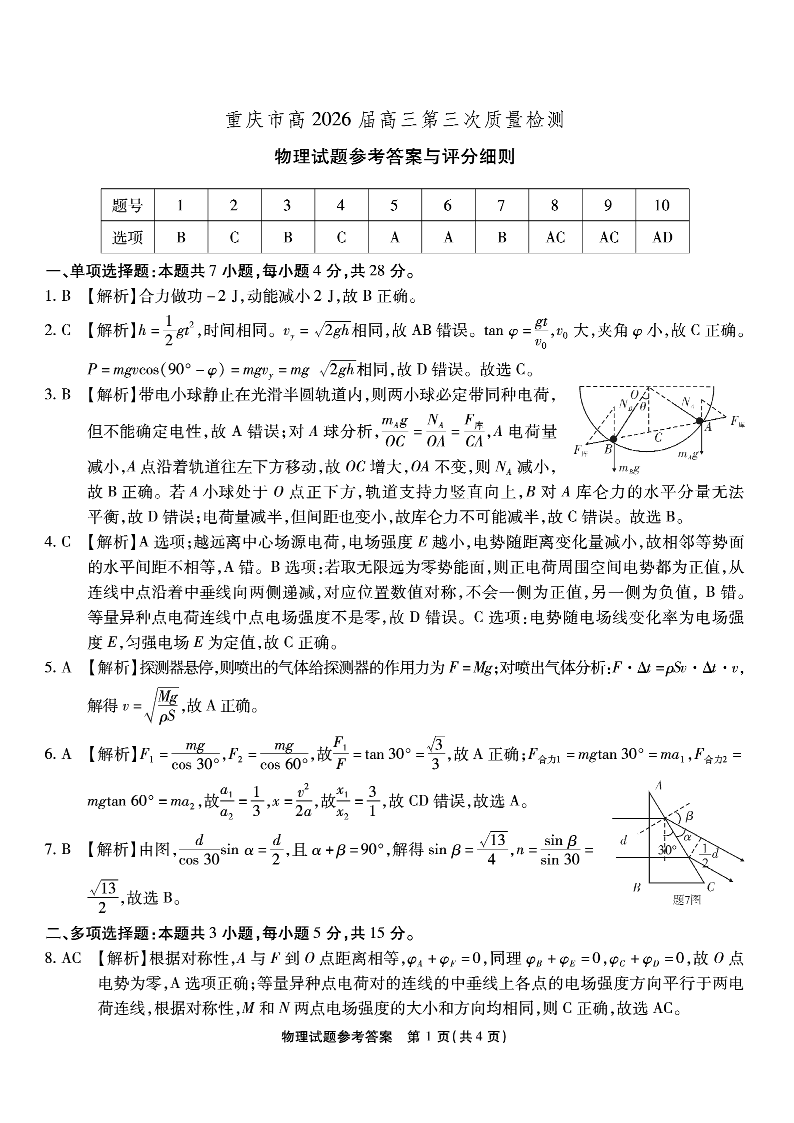 南开中学高2026届高三第三次质量检测 物理答案.pdf