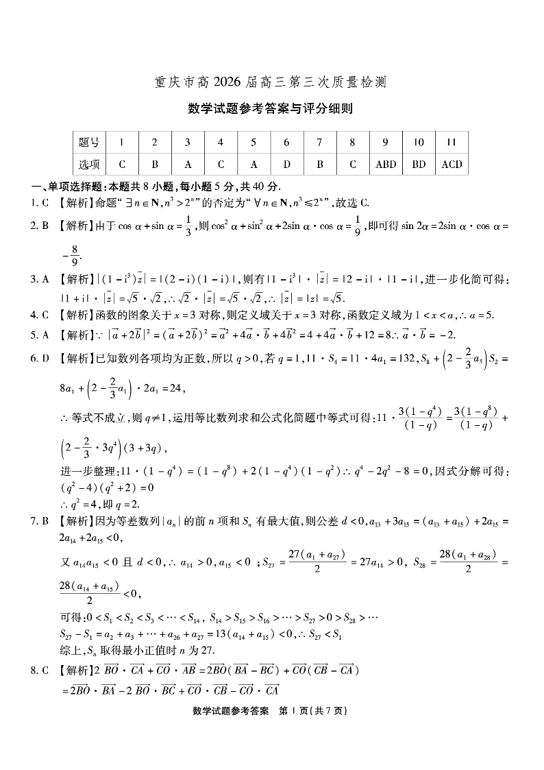 南开中学高2026届高三第三次质量检测 数学答案.pdf