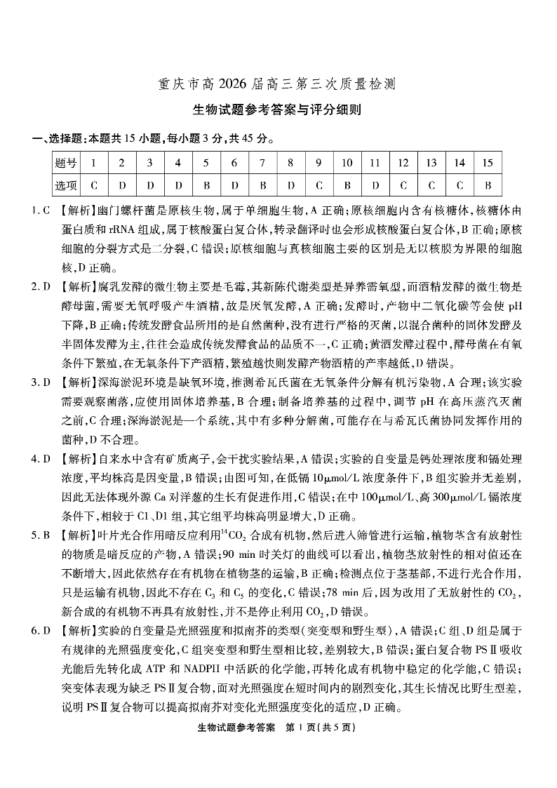南开中学高2026届高三第三次质量检测 生物答案.pdf