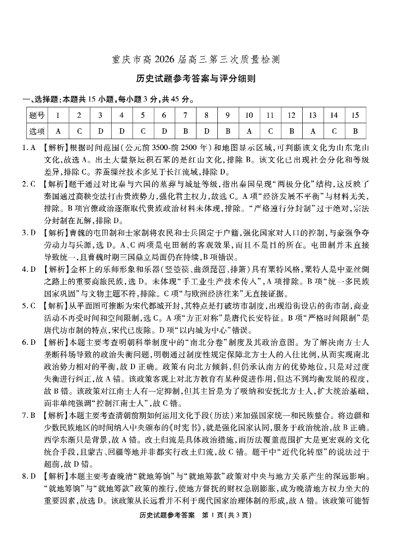 南开中学高2026届高三第三次质量检测 历史答案.pdf
