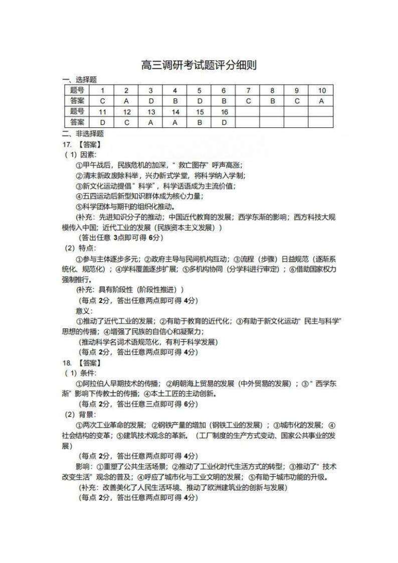 广东省江门市2026届普通高中高三调研测试 历史答案.pdf