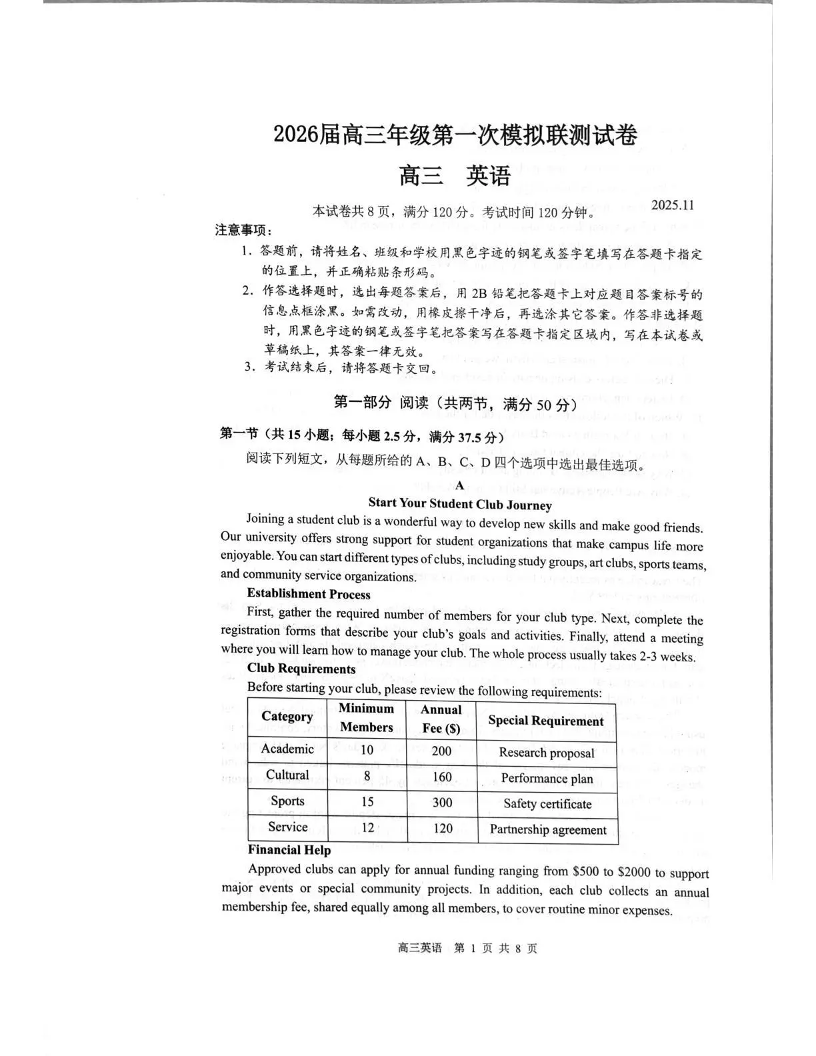 2026届高三年级第一次模拟联测 英语.pdf