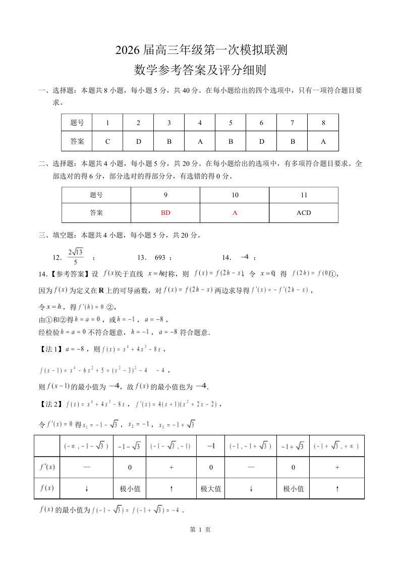 2026届高三年级第一次模拟联测 数学答案.docx