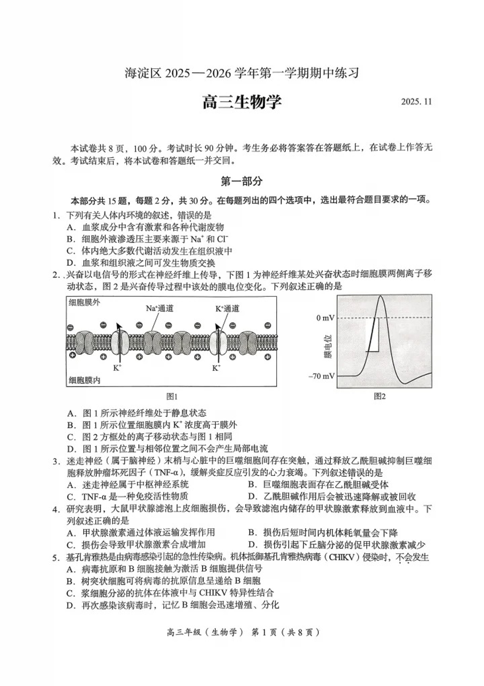 海淀区2025一2026学年第一学期期中练习 生物.pdf
