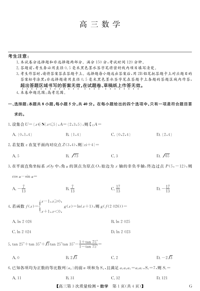 九师联盟2026届高三上学期11月联考 数学.pdf