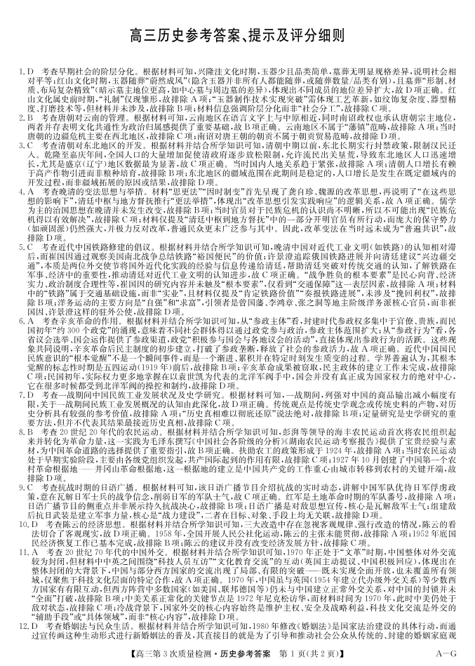 九师联盟2026届高三上学期11月联考 历史答案.pdf