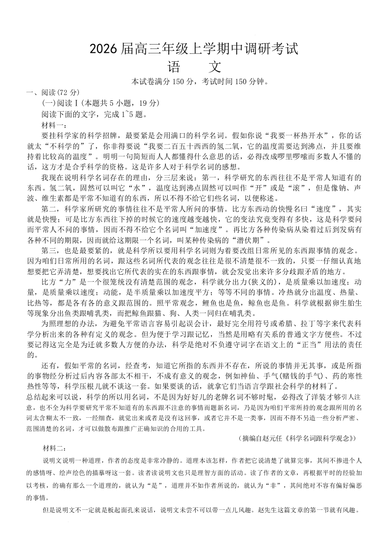 河北省保定市四县六校2026届高三上学期11月期中调研考试 语文试题(含答案).docx