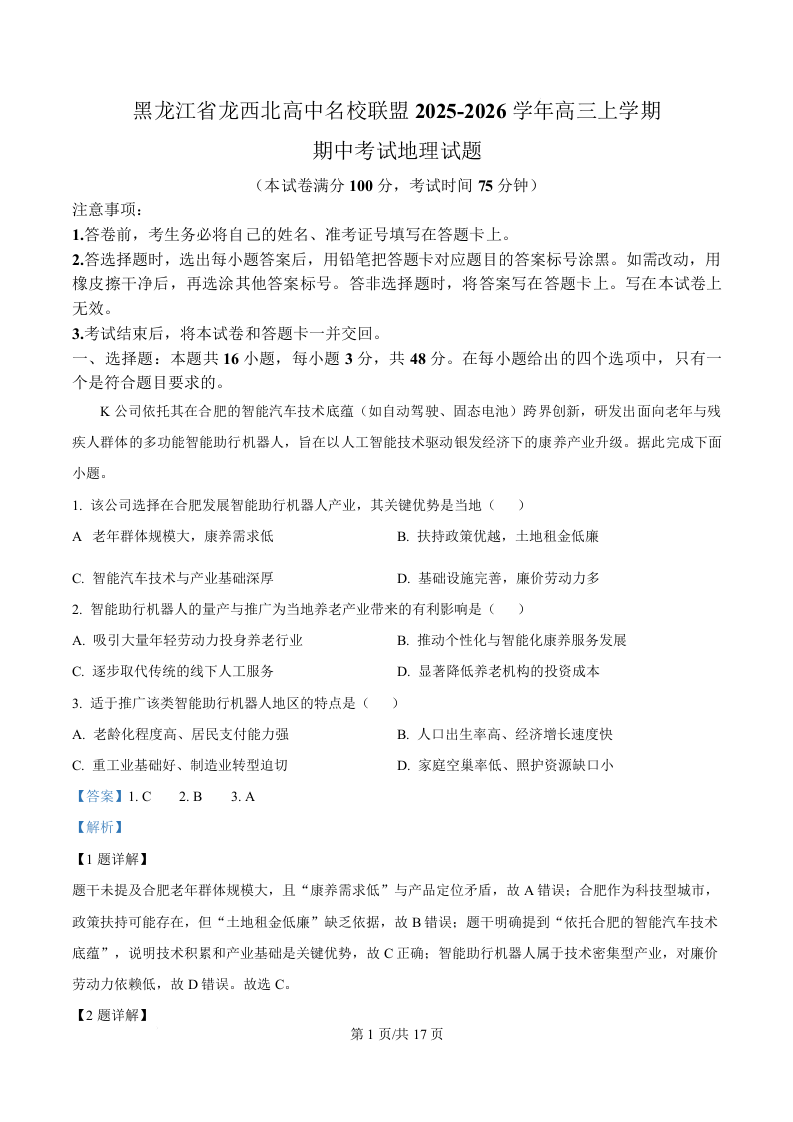 黑龙江龙西北高中名校联盟2025-2026学年上学期高三期中考试 地理答案.docx
