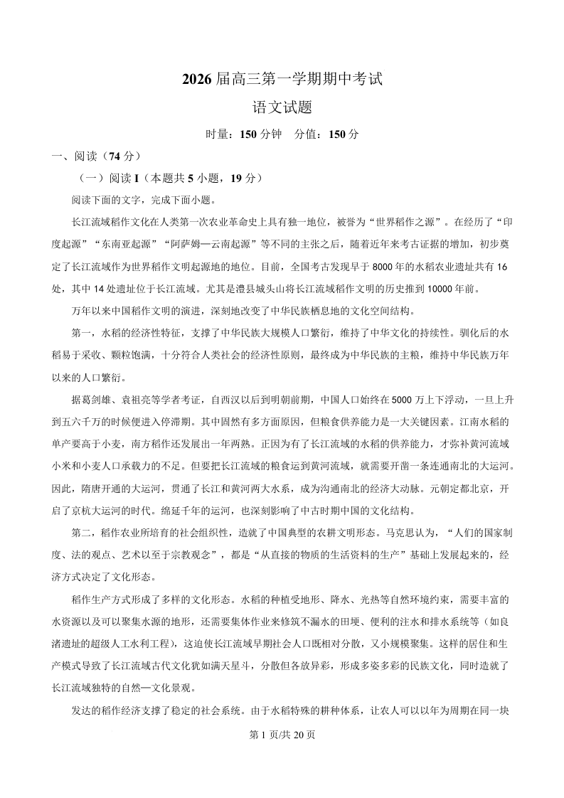 湖南省衡阳市第八中学2026届高三上学期11月期中考试 语文答案.docx