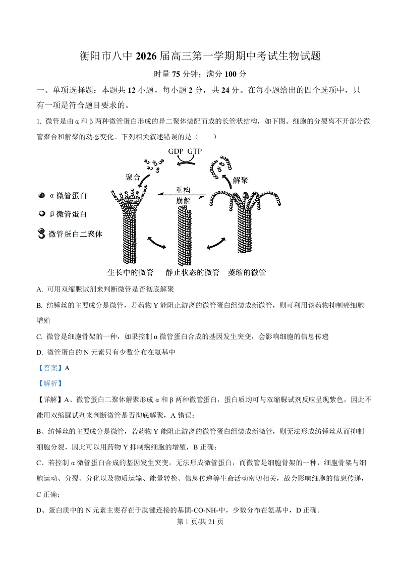 湖南省衡阳市第八中学2026届高三上学期11月期中考试 生物答案.docx