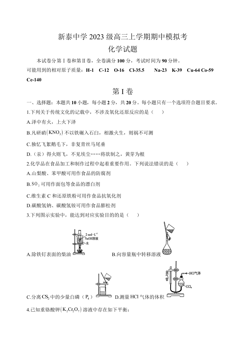 山东省泰安市新泰中学2025-2026学年高三上学期期中模拟 化学.docx