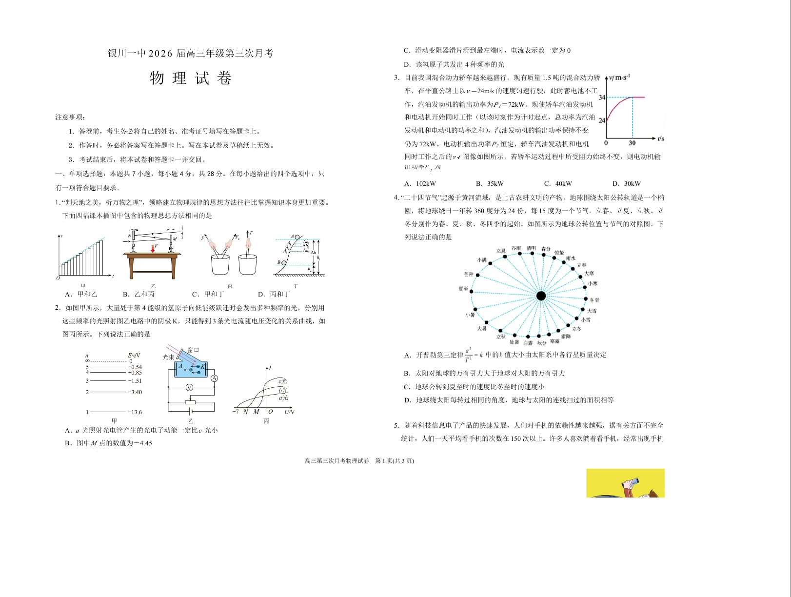 宁夏银川市一中2026届高三上学期第三次月考 物理.docx