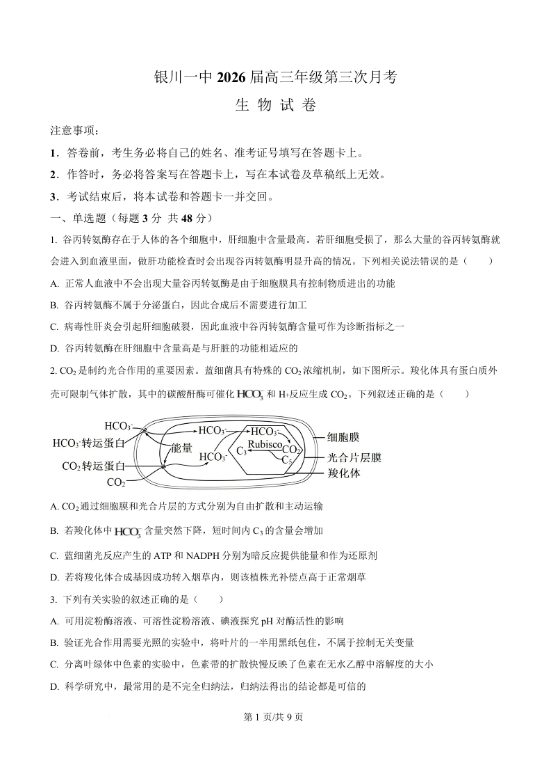 宁夏银川市一中2026届高三上学期第三次月考 生物.docx