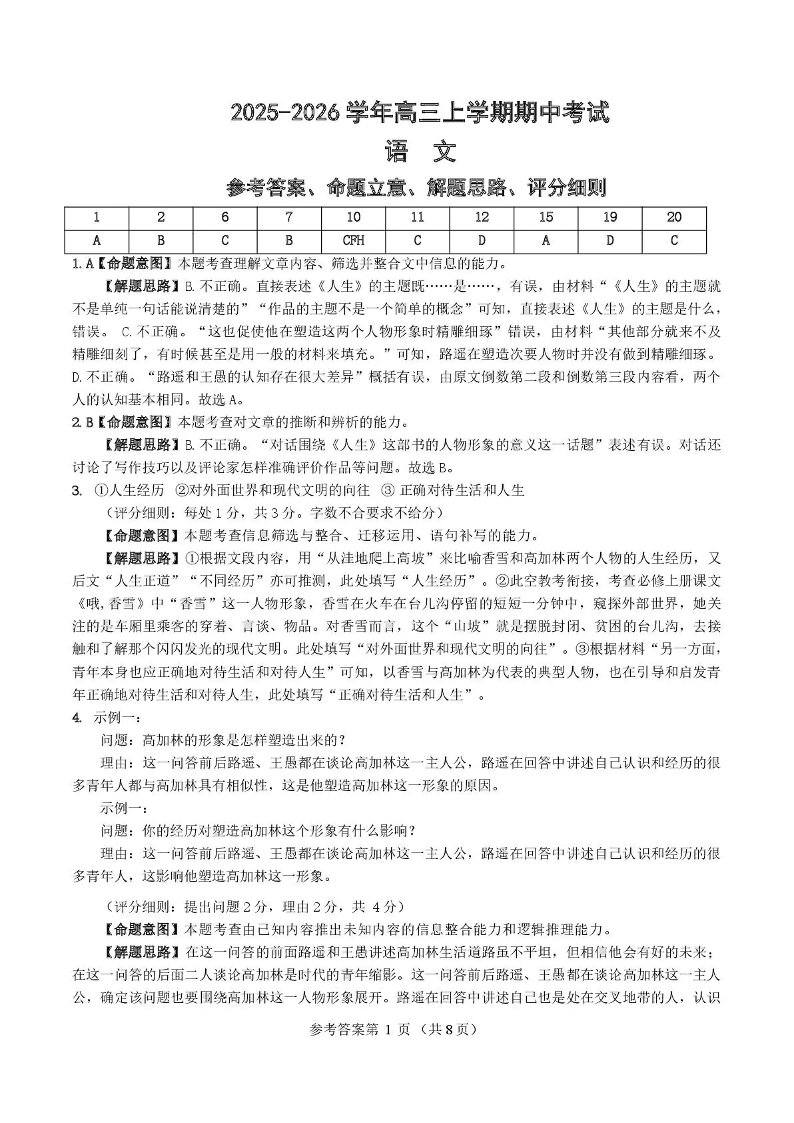 曲靖一中2026届高三年级上学期第三次阶段性测试 语文答案.pdf
