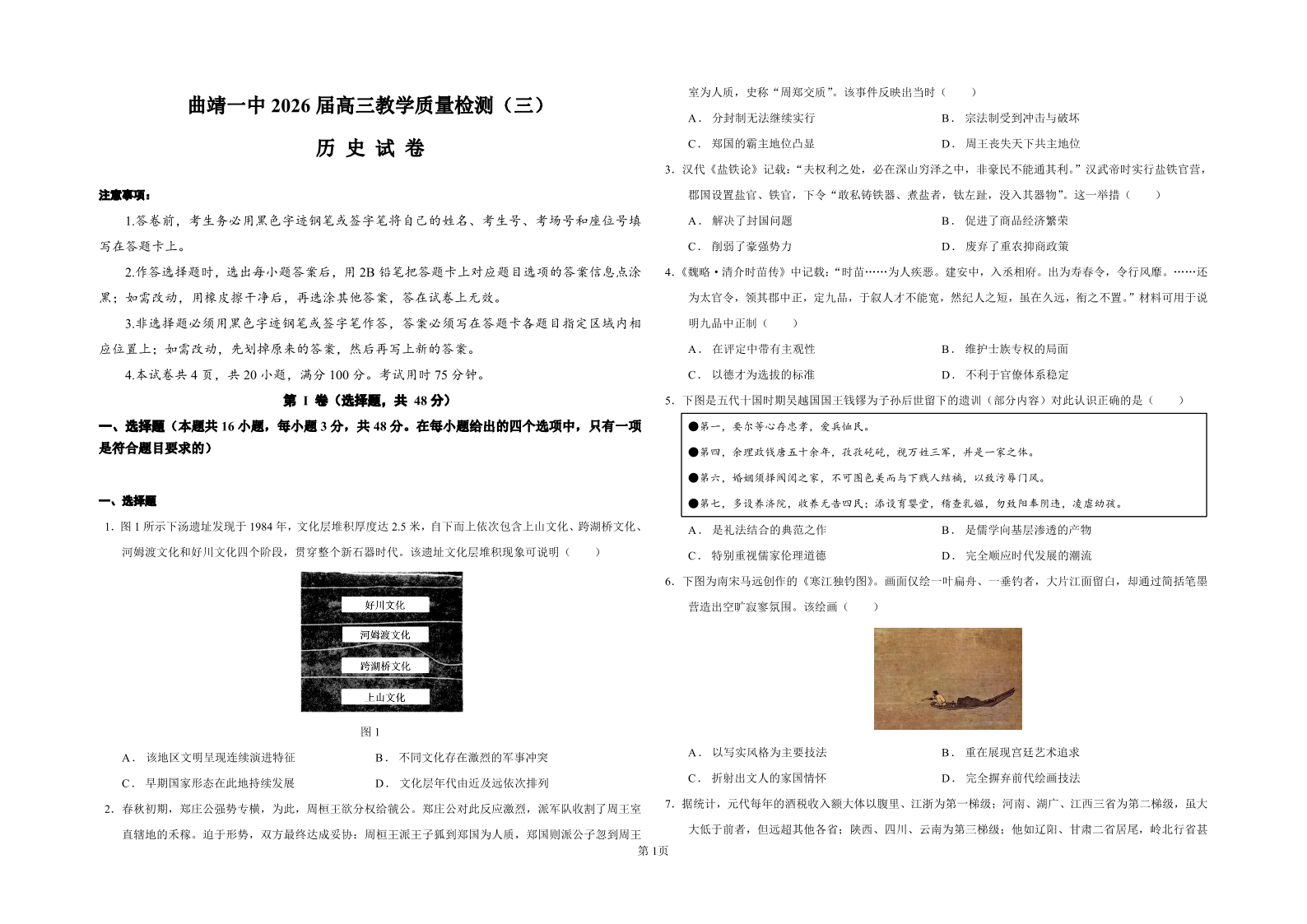 曲靖一中2026届高三年级上学期第三次阶段性测试 历史.pdf