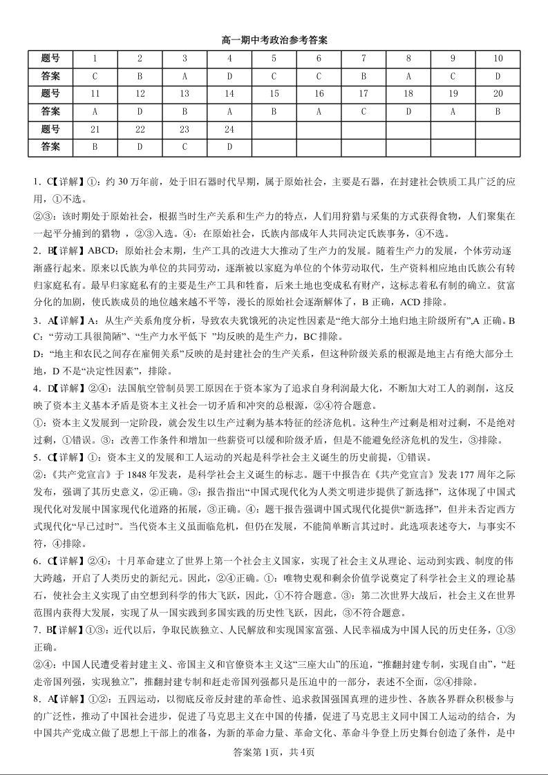 云南省玉溪第一中学2025-2026学年高一上学期期中考试 政治答案.docx