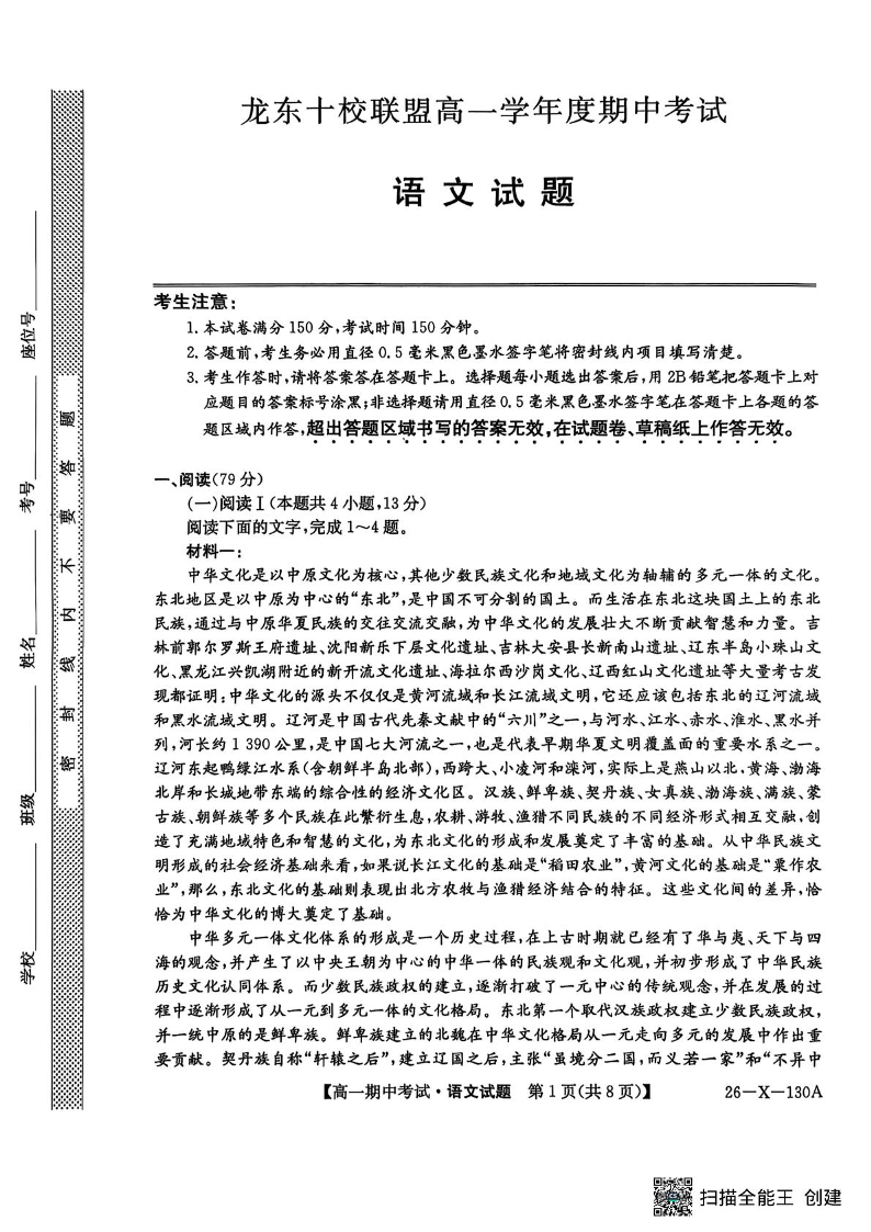 黑龙江省龙东十校联盟2025-2026学年高一上学期期中考试 语文.pdf