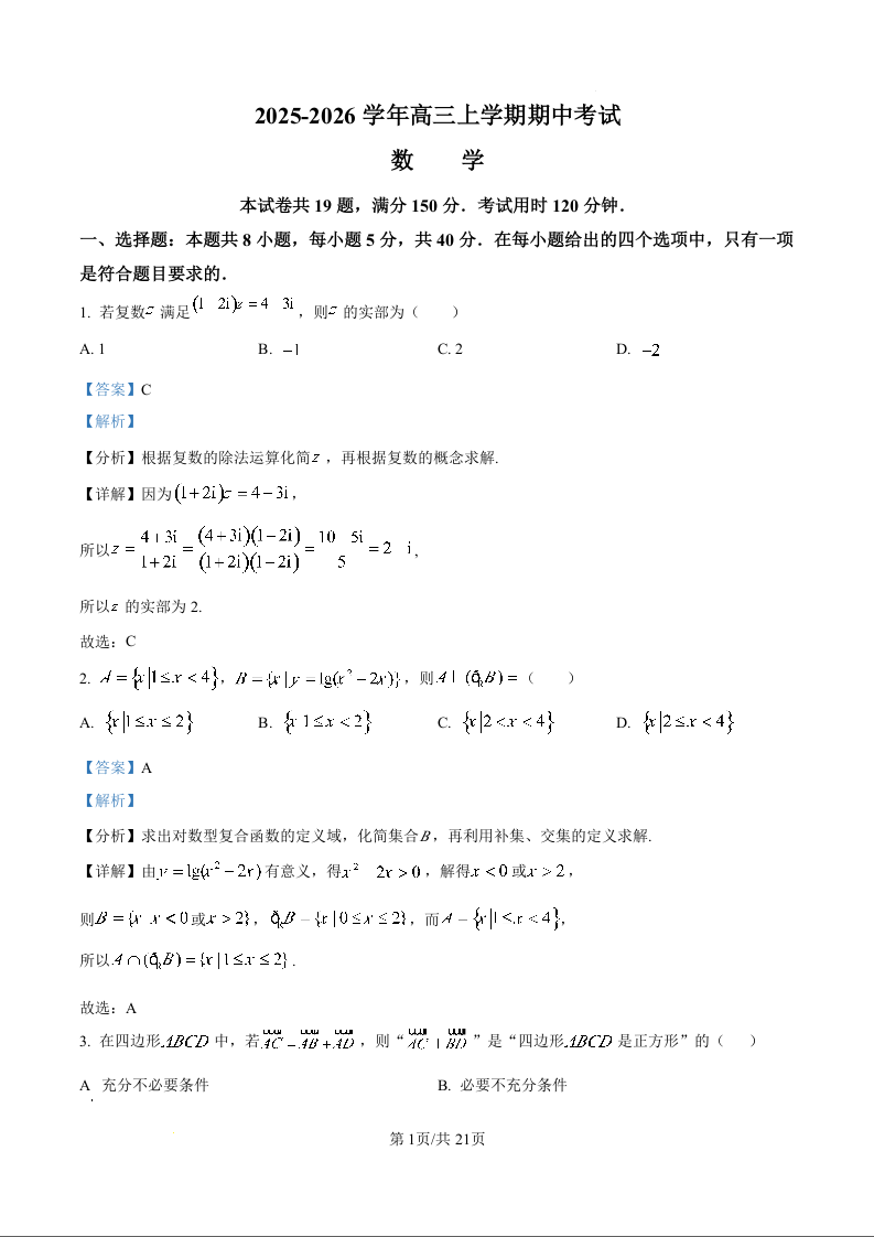 河北省邢台市七校2026届高三上学期11月期中考试 数学答案.docx