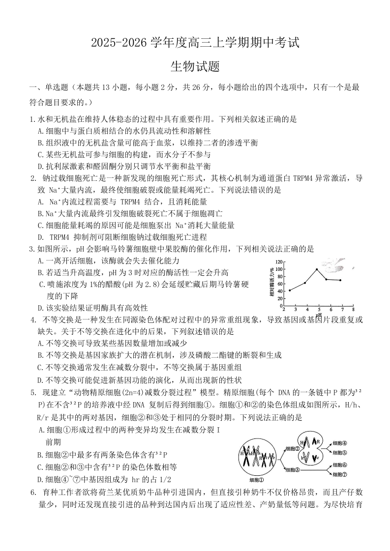 河北省邢台市七校2026届高三上学期11月期中考试 生物.docx