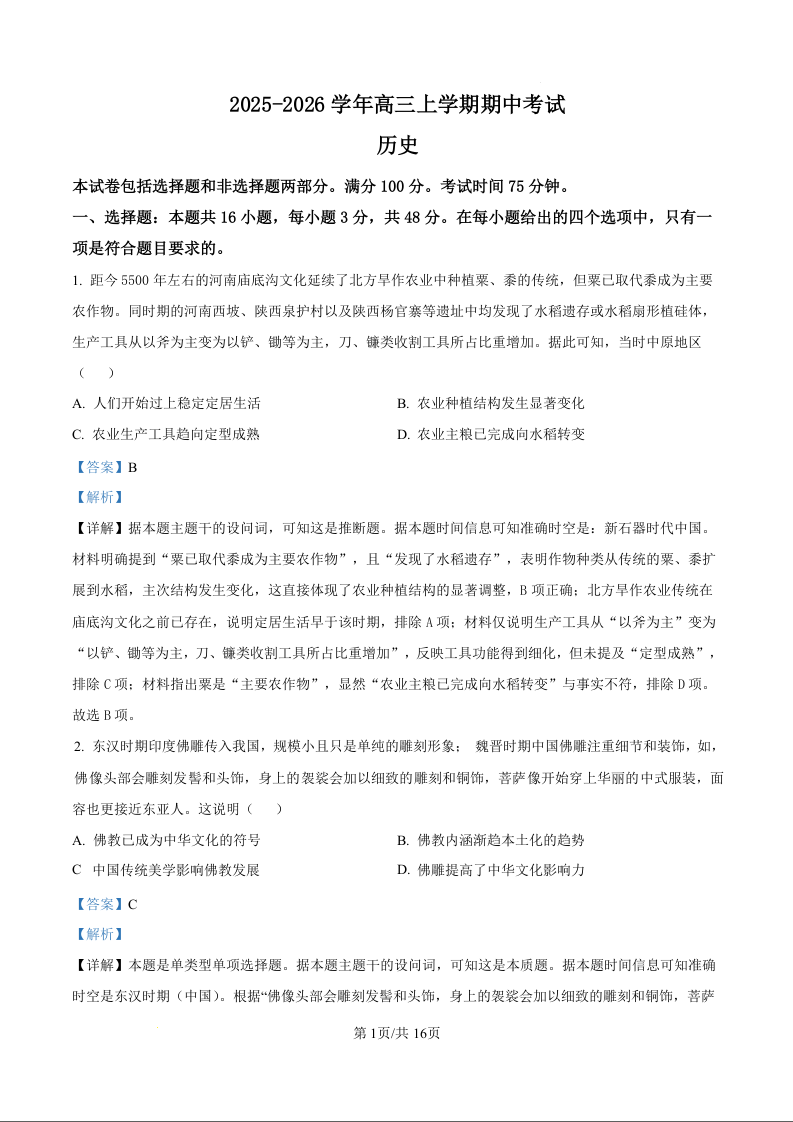 河北省邢台市七校2026届高三上学期11月期中考试 历史答案.docx