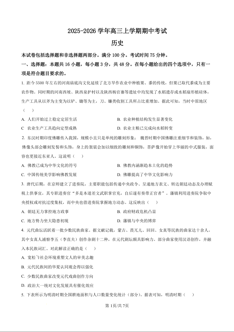 河北省邢台市七校2026届高三上学期11月期中考试 历史.docx