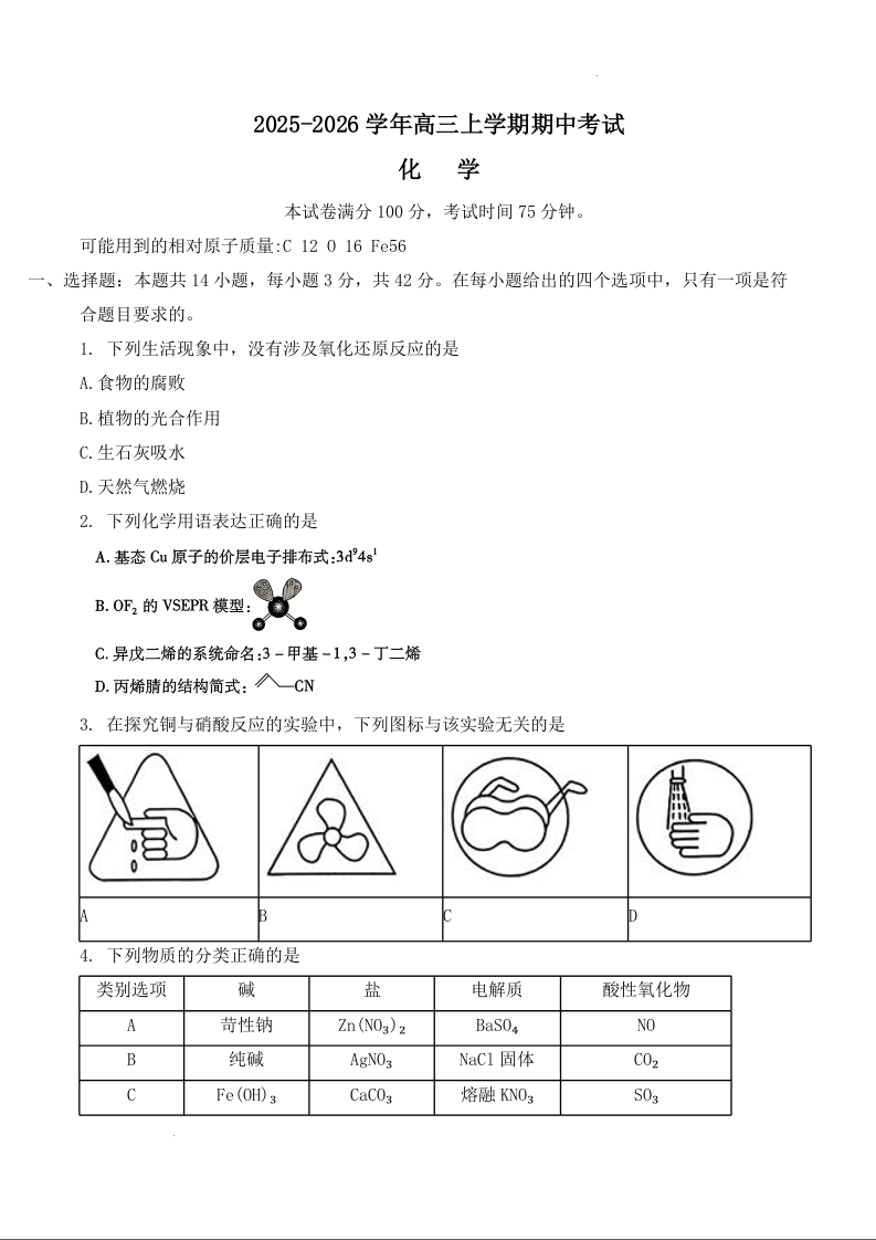 河北省邢台市七校2026届高三上学期11月期中考试 化学.docx