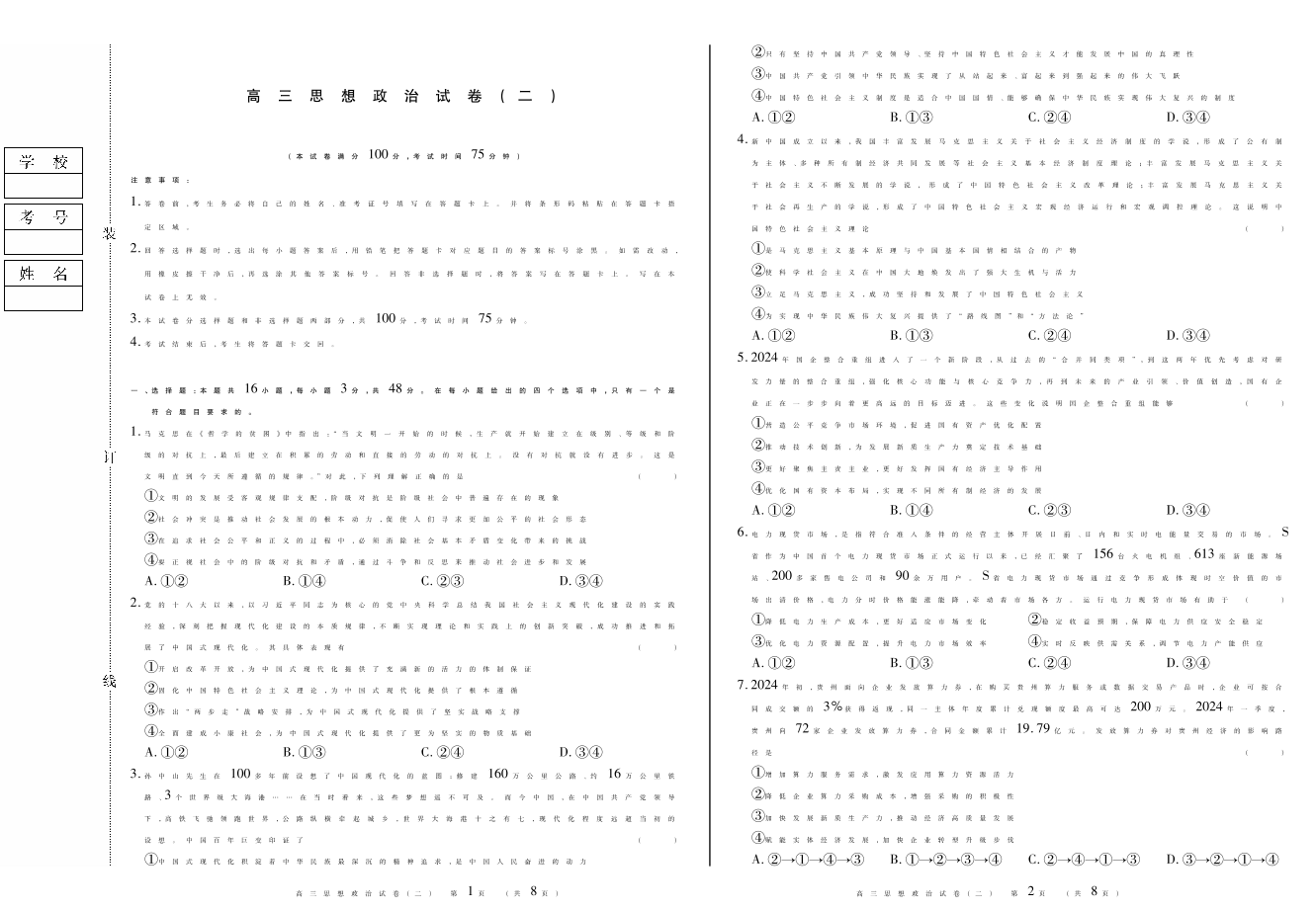 新时代高中教育联合体2025年11月高三学年期中联考巩固卷(二)政治.pdf