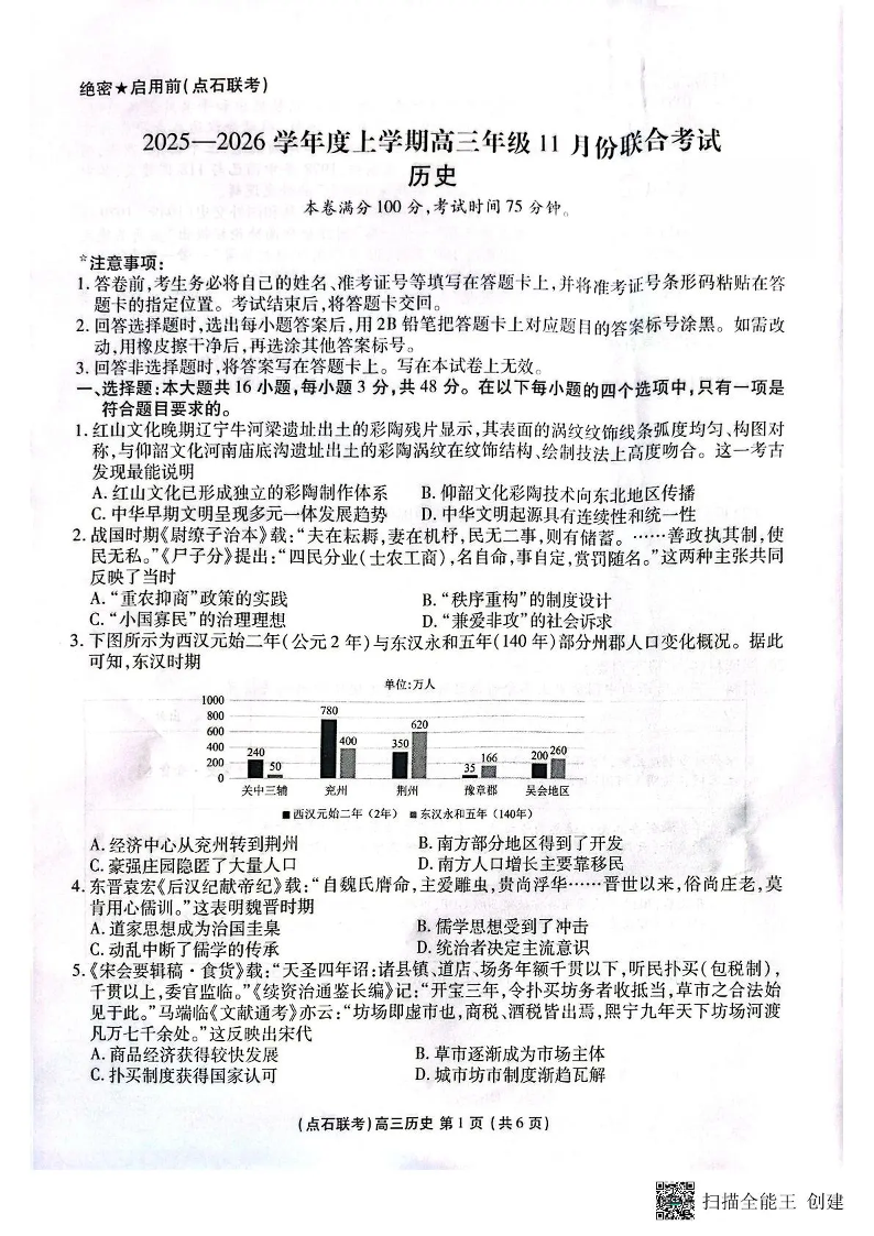 点石联考2025—2026学年度上学期高三年级11月份联合考试 历史.pdf