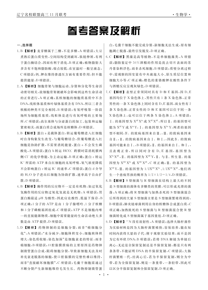 辽宁省名校联盟2025年高三11月份联合考试 生物答案.pdf