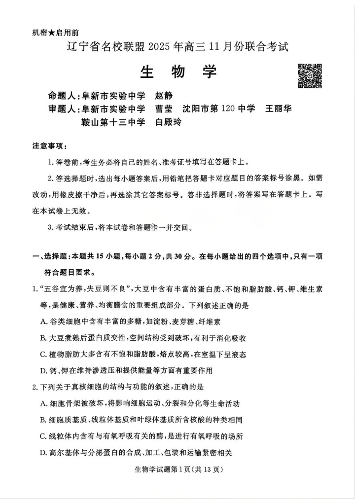 辽宁省名校联盟2025年高三11月份联合考试 生物.pdf