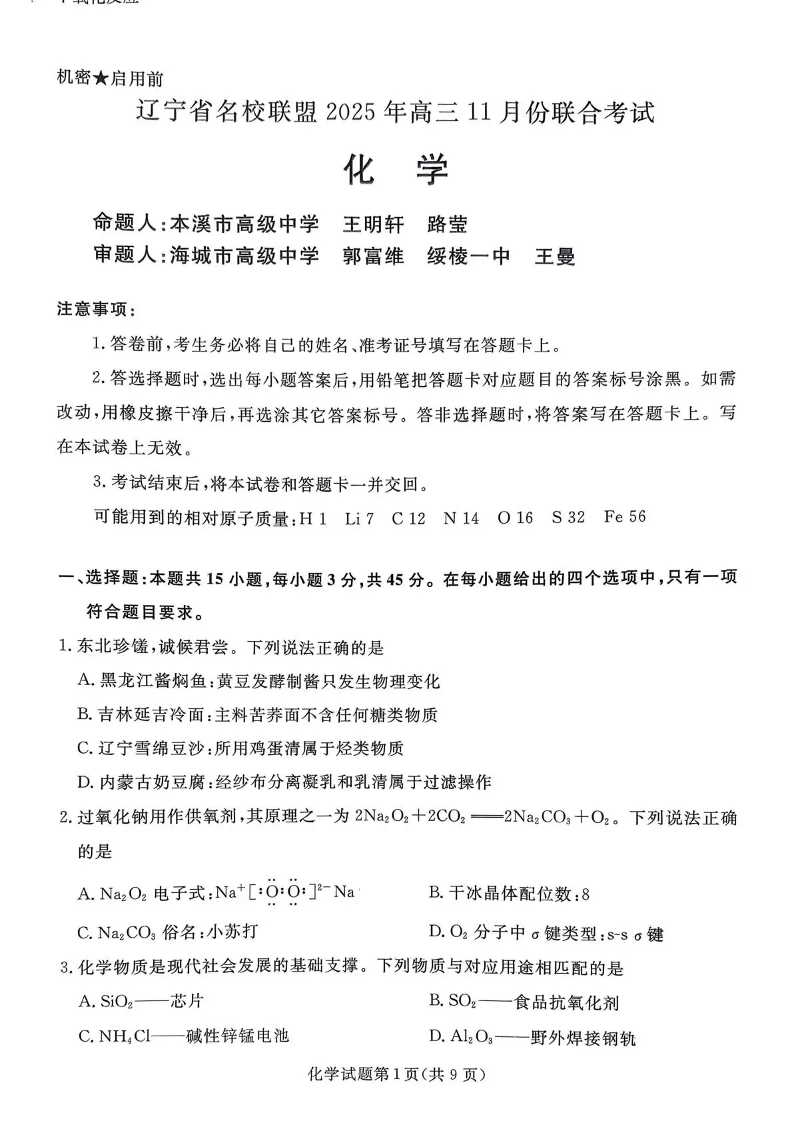 辽宁省名校联盟2025年高三11月份联合考试 化学.pdf