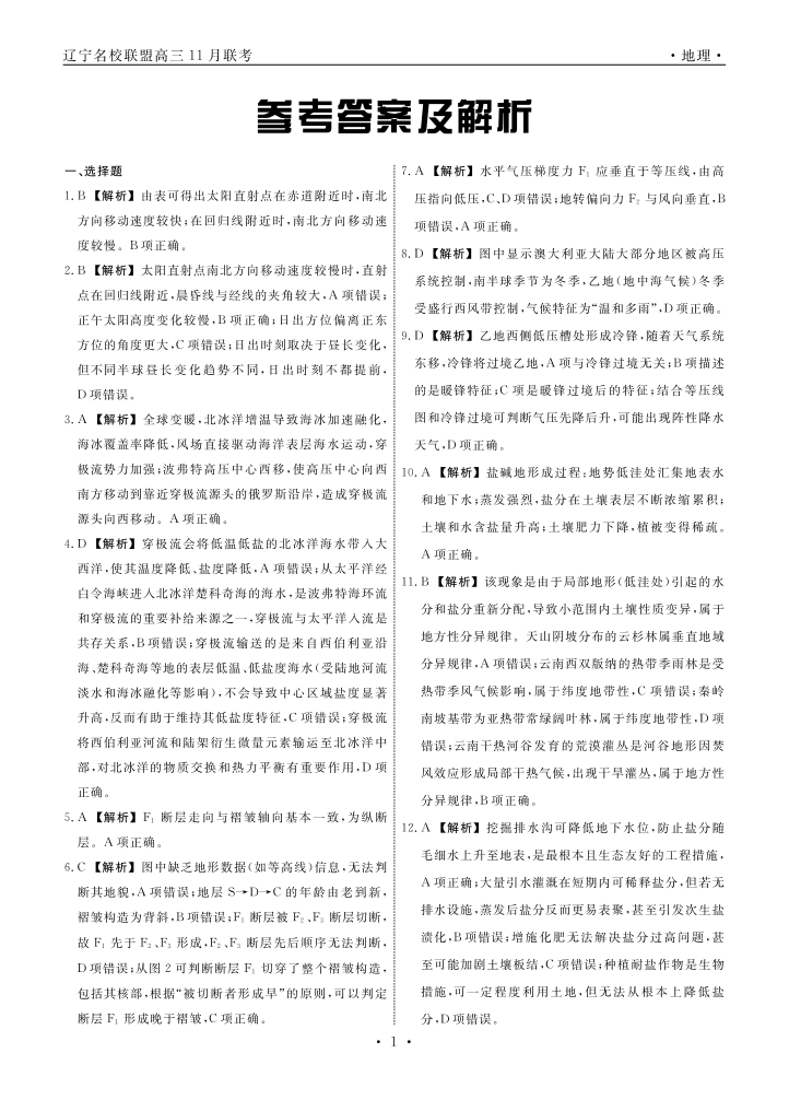 辽宁省名校联盟2025年高三11月份联合考试 地理答案.pdf
