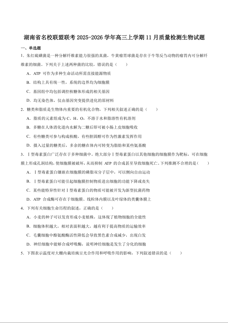 天壹名校联盟2026届高三11月质量检测 生物.docx