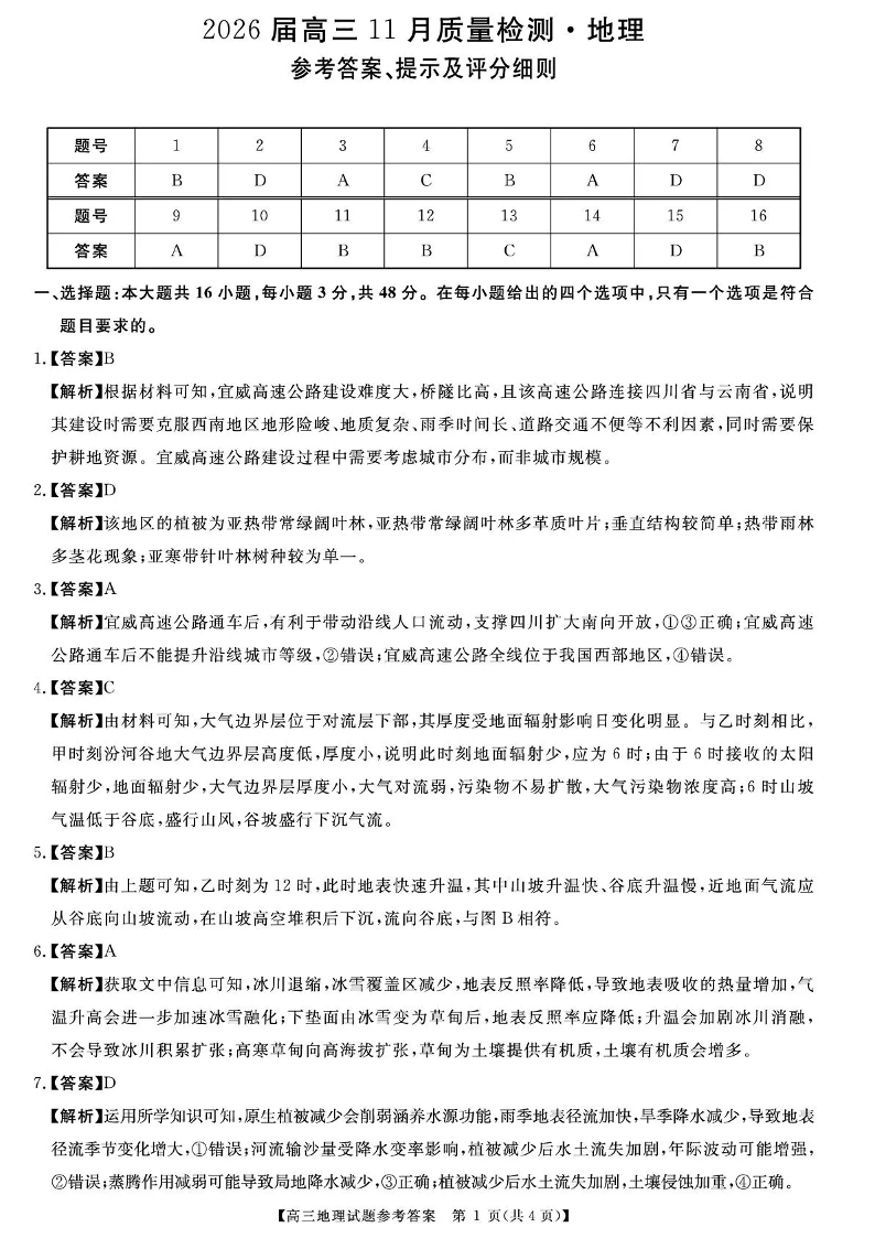 天壹名校联盟2026届高三11月质量检测 地理答案.pdf
